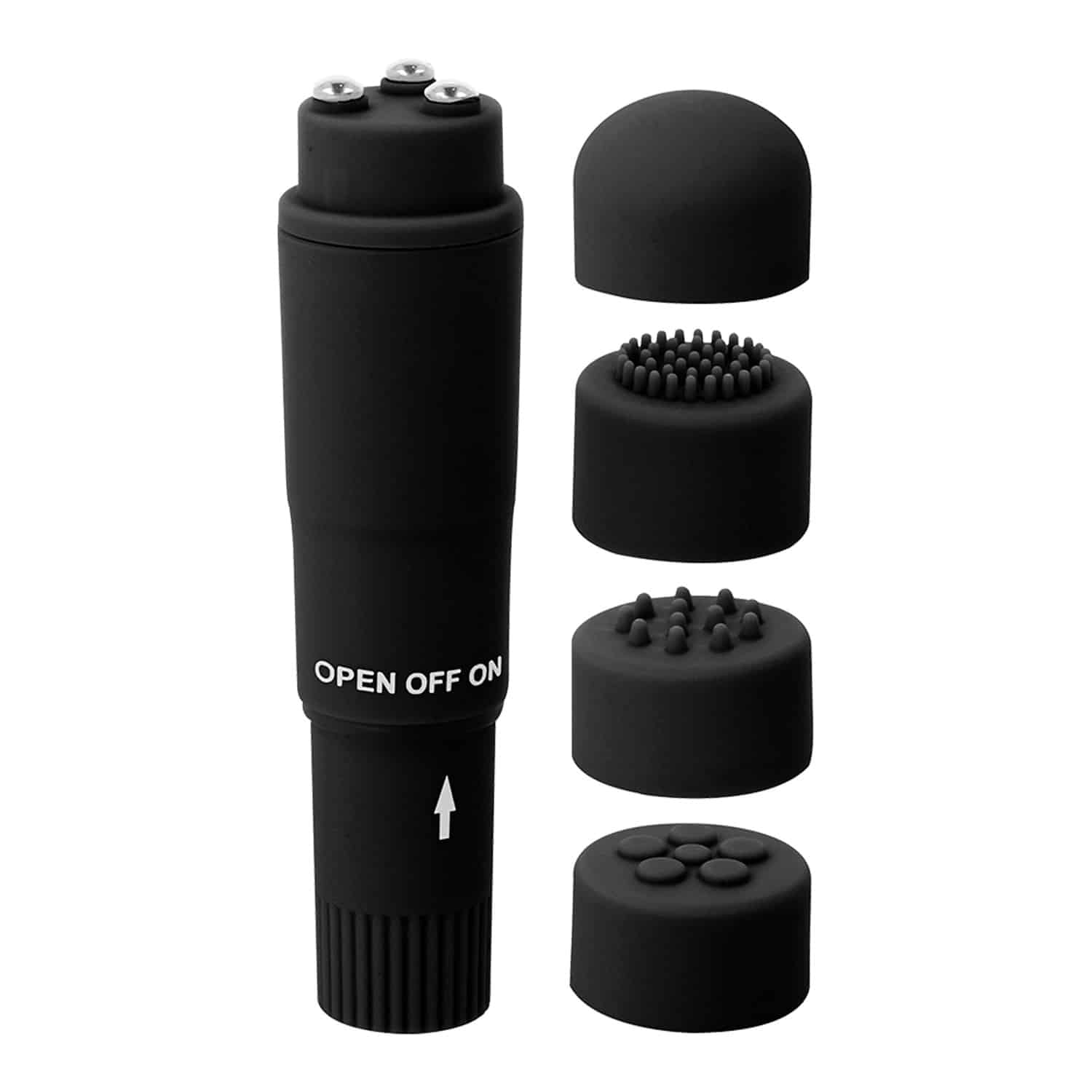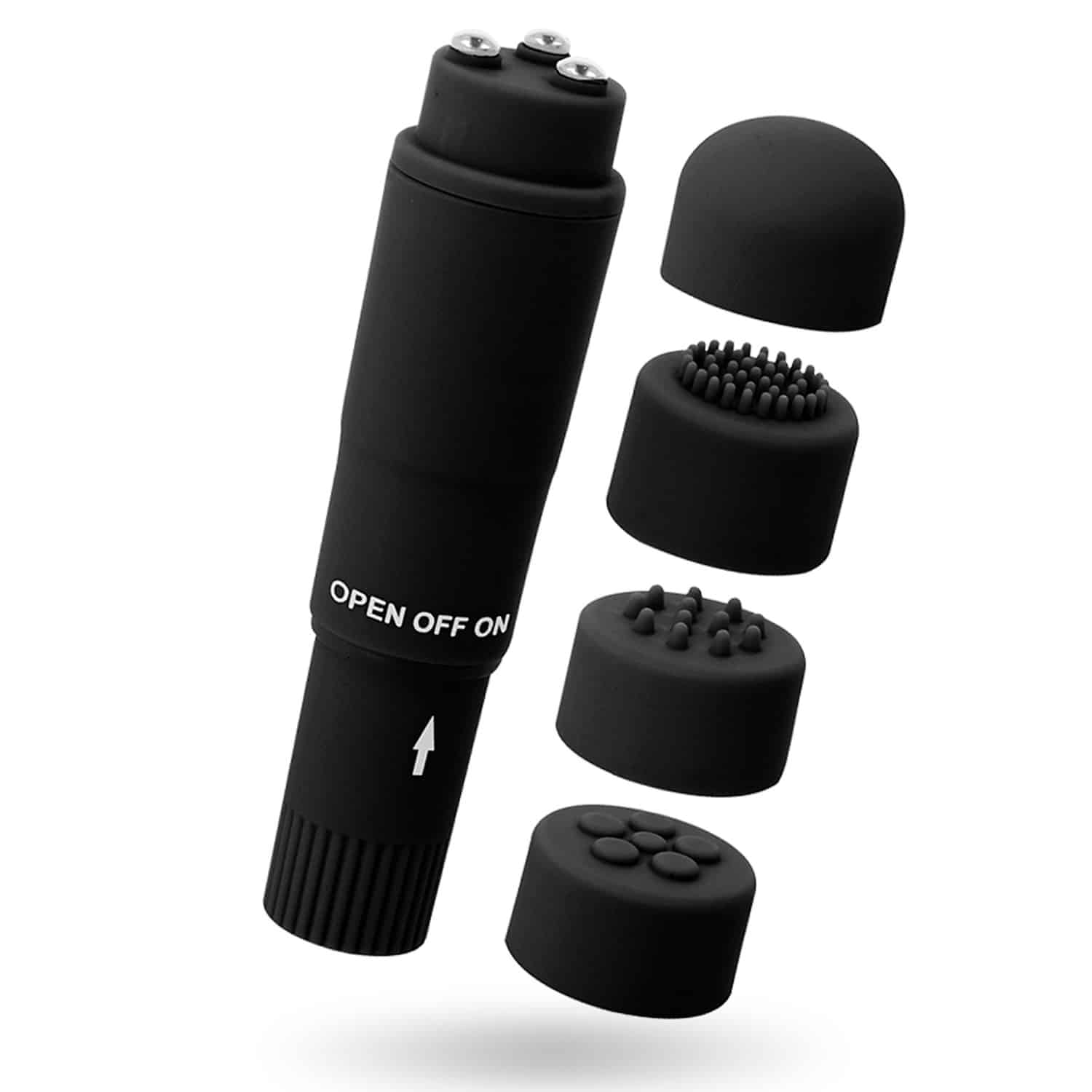 Slappna av, minska din stress och lämna några minuter åt dig själv. Med fyra mjuka utbytbara huvuden som du kan välja mellan, kommer denna mini multi-speed massageapparat att stimulera den exakta punkten du behöver mest. Färdig med vår silkeslena glans, denna kraftfulla vibrator är mjuk vid beröring, ultra elegant och kommer att förmedla ett nöje som aldrig tidigare upplevts, även för sin diskreta storlek kan du ta den vart du vill.