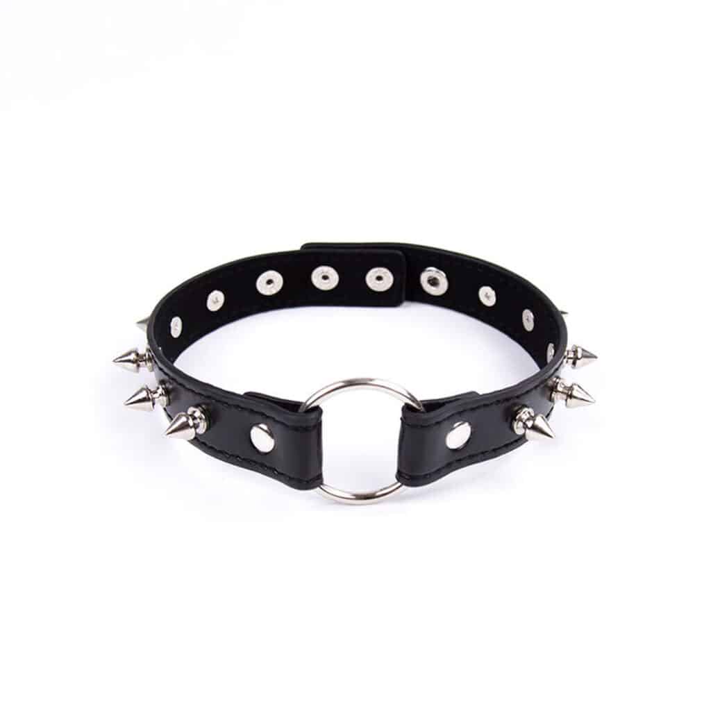 Med Spikes Punk Choker Halsband med Ring och Nitar kan du komplettera vilken look som helst med eller lägg till ett koppel och bär det till din mörkare sida. Den är fullt justerbar tack vare dess fästen.
